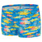- Slightly longer than a swim brief, these aqua shorts are without drawcord for safety reasons.