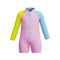 Our unisex Long-Sleeve Colourblock Zip suit is ideal for fun times in the sun. Made for all-day comfort from chlorine-resistant Endurasoft fabric, it includes four-way stretch and pilling resistance. The full-coverage design features a front zip for easy changing and UPF40+ protection. Body made of 82% recycled polyester, 18% Creora® HighClo™ elastane.