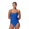 Our Solid Racerback swimsuit is ideal for workouts and active swims. Its stretchy XLANCE® fabric is comfy and durable, resisting chlorine and pilling for long-lasting performance. The racerback straps sit between the shoulder blades, allowing maximum shoulder movement during your swim. Cut with classic coverage, this one-piece includes removable cups and a comfort underbust elastic for light bust support. Body made of 78% recycled polyester, 22% XLANCE.